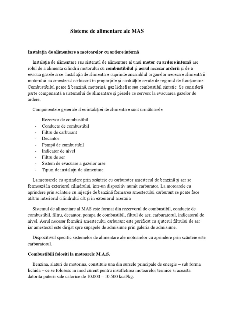 Instalatia de alimentare are rolul de a alimenta cilindrul cu cobustibili la mac si cu combustibili si aer la mas ,necesar arderii si de a evacua gazele arse.