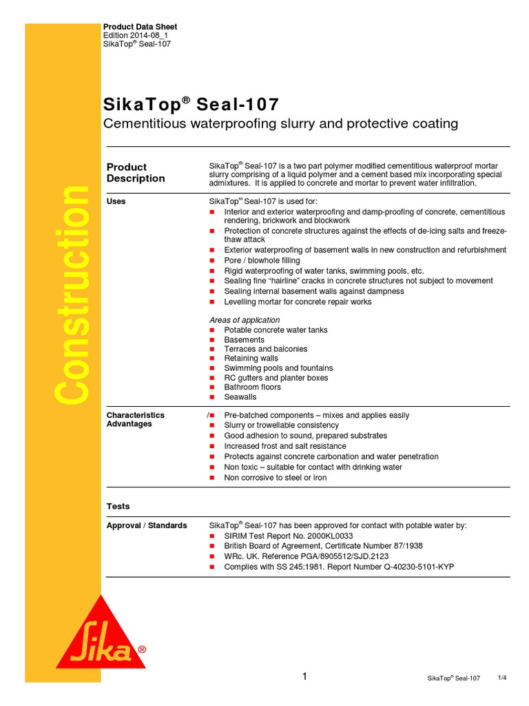 Công ty phú sơn phân phối sikatop seal 107 trên cả nước. Za podne spojeve i ostala kritična mesta (na primer spoj horizontalnih i vertikalnih površina). It is slightly flexible to easy and fast mixing and application.